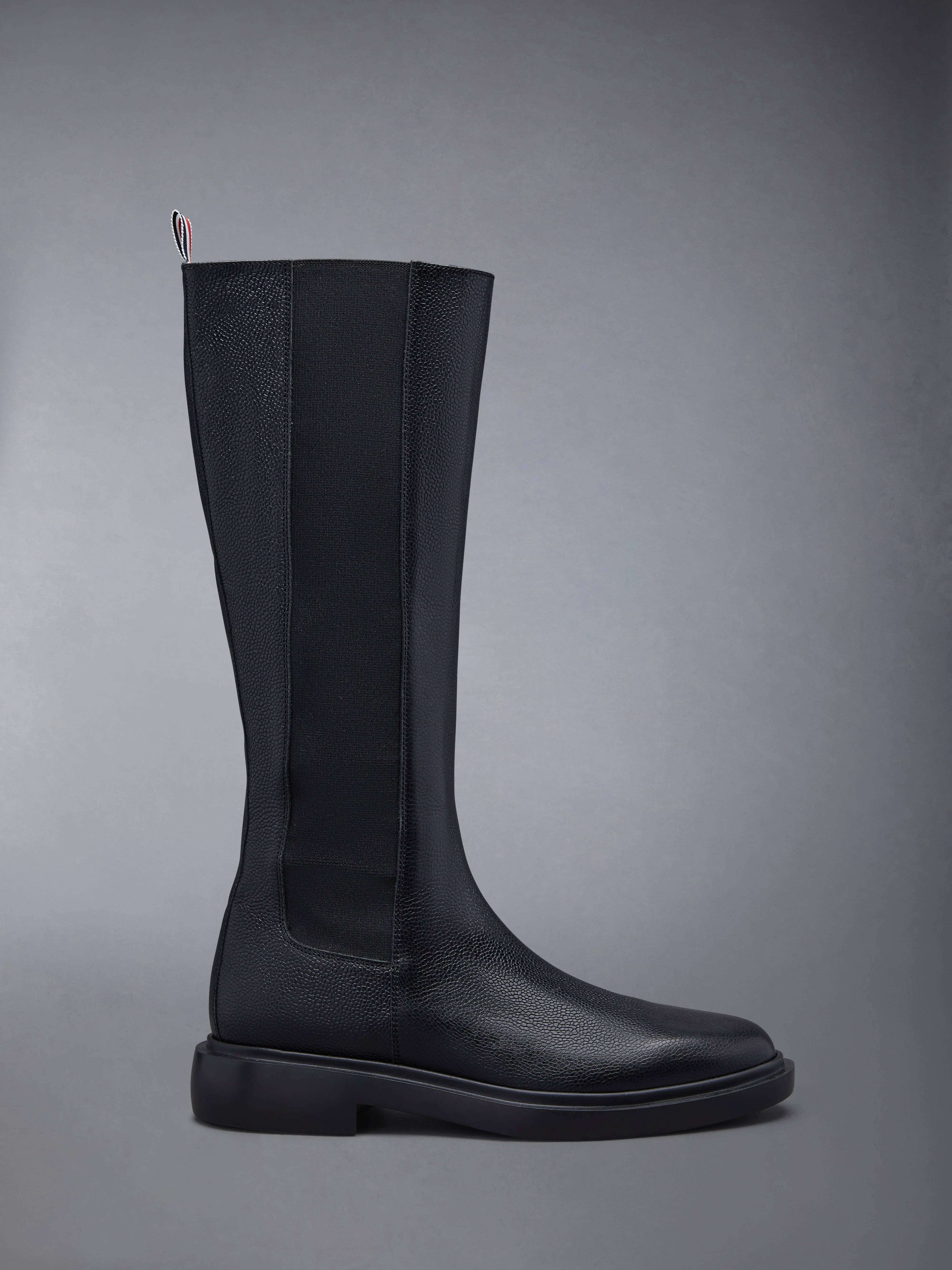 Black Pebble Grain Leather 4-Bar Lightweight Rubber Sole Knee High Chelsea Boot