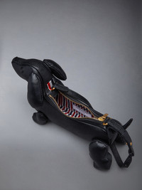 DETAILS & FIT Our Pebble Grain Hector Baguette Bag. Heralded as the most famous dog muse in fashion, Thom Browne’s very own dachshund Hector served as the inspiration behind this quintessential piece. Brass zip top closure Adjustable leather shoulder strap Brass bone charm Striped lining Signature striped grosgrain loop tab at back of neck Measures W32 x H21 x D13cm 100% Calf Full Grain Leather Lining: 100% Polyester Made in Italy FAP341A-00198-001