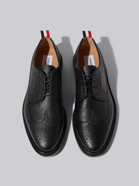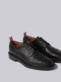 Black Pebble Grain Leather Lightweight Rubber Sole Longwing Brogue