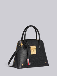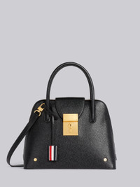 DETAILS & FIT Mrs. Thom satchel in black pebble grain leather with removable shoulder strap. Zippered top with brass lock closure. 2 padded leather top handles. Removable leather shoulder strap. Leather luggage tag with stripe detail. Gold foil printed logo and striped grosgrain loop tab at entry. Brass hardware. 100% Calf Leather Made in Italy FAP336A00198001
