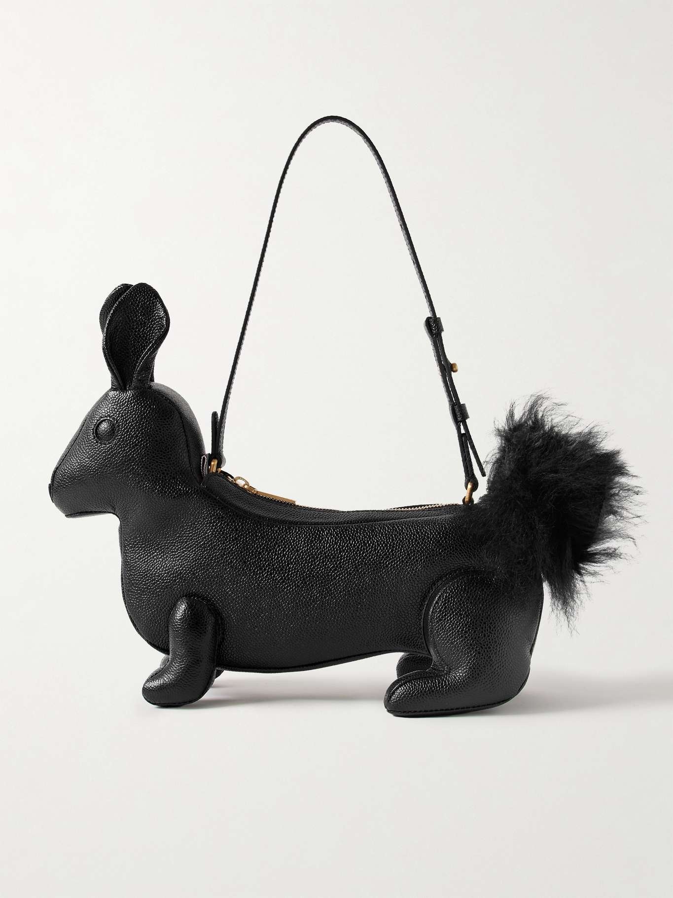 EDITORS'NOTES Unconventional bags are something of a Thom Browne signature and this style is shaped to depict a black rabbit. Made from textured-leather, it's detailed with upstanding ears, a fluffy faux fur tail and a slim, adjustable strap. The striped interior is sized to fit your phone, keys and cardholder. DETAILS & CARE - Black textured-leather (Calf), black faux fur - Adjustable shoulder strap - Internal slip pocket - Faille lining - Zip fastening along top - Comes with dust bag - Weighs approximately 1.1lbs/ 0.5kg