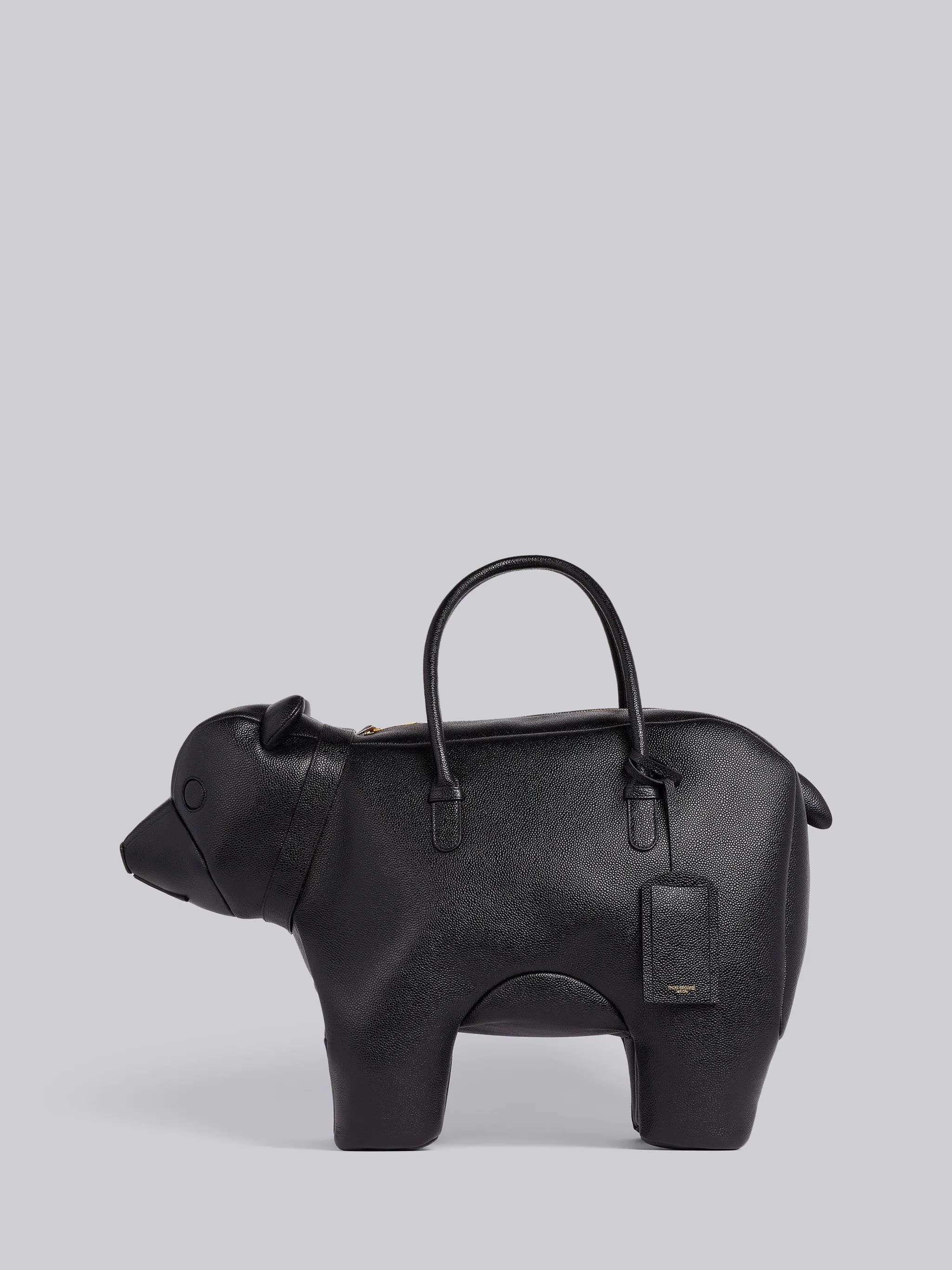 DETAILS & FIT Black Bear Bag Pebbled Calfskin Leather Top Leather Handles Detachable Luggage Tag Tricolor Stripe Lining Brass Hardware Signature Grosgrain Loop Tab Length: 60cm Height: 50cm Width: 28cm Discover the new animal icons at your Thom Browne store . NOTES 100% Calfskin Leather Made in Italy MAG249A00198001