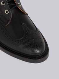 Black Pebbled Calfskin Mix Longwing Brogue Boot