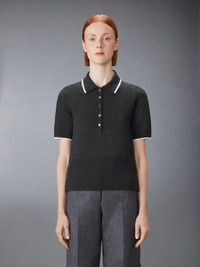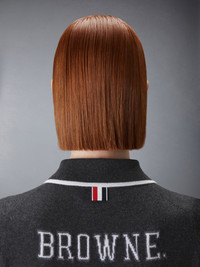 Featuring a sporty polo collar, this sweater pays homage to athletics, heritage, and craftsmanship. Bold Browne lettering and the number 65—a nod to Thom's birth year—are rendered in an iconic collegiate font, famously used at Notre Dame. Collegiate heritage is often associated with nostalgia and belonging, and it's deeply personal to Thom. This garment is not just a tribute to school pride but a symbol of the enduring desire to be part of something greater. Partial front button closure Buttoned side vents with signature striped grosgrain trim Signature striped grosgrain loop tab Model is 5'10" (178 cm), wearing size 40 100% Cashmere Made in Italy FKP127A-Y2001-025