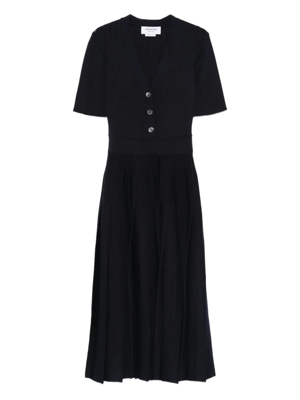button-pleated maxi dress Highlights - Dark blue - V-neck - Short sleeves - Button fastening - Pleated skirt - Ribbed knit Made in Italy Composition Wool 70%, Silk 30% Washing instructions Dry Clean Only