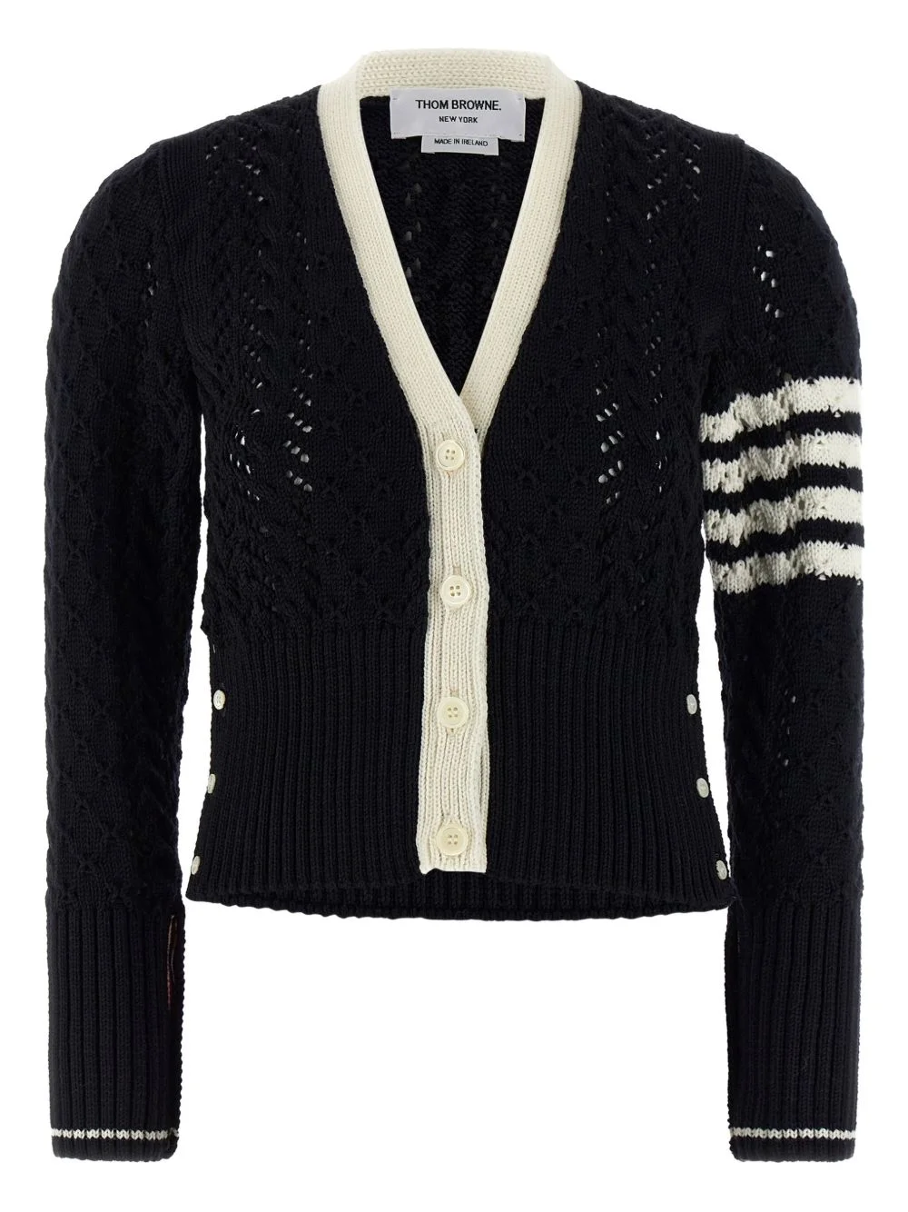 cable-knit cardigan Highlights - Black - V-neck - Button fastening - Signature 4bar - Long-sleeve Made in Italy Composition Virgin Wool 100% Washing instructions Read Manufacturer Guidelines