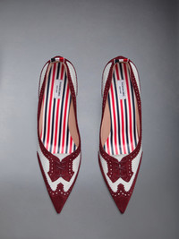 Sleek and sophisticated, these heels are meticulously crafted from contrasting hues of supple suede. Designed to make a statement while remaining endlessly versatile, they pair effortlessly with everything from signature Thom Browne dresses to sharply tailored trousers. Slip on Signature striped grosgrain loop tabs Upper: 100% Calf Suede Leather Sole: 100% Calf Leather Lining: 100% Goat Leather Lining 2: 100% Lamb Leather Made in Italy FFI003A-L0037-612