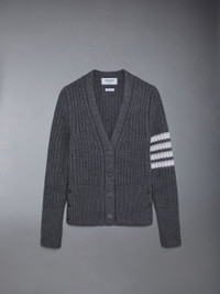 DETAILS & FIT Embracing the essence of the autumnal season of the sport, warm cashmere classic cardigan with iconic 4-bar, available in two color variations and ready to wear. Classic V-neck cardigan Engineered 4-bar stripe Cardigan stitch button down placket Ribbed cuff Ribbed hem with side vent Mother of pearl buttons Grosgrain loop tab at center back neck Model is 5'10" (178 cm), wearing size 40 100% Cashmere Made in Italy FKC550A-Y2007-035