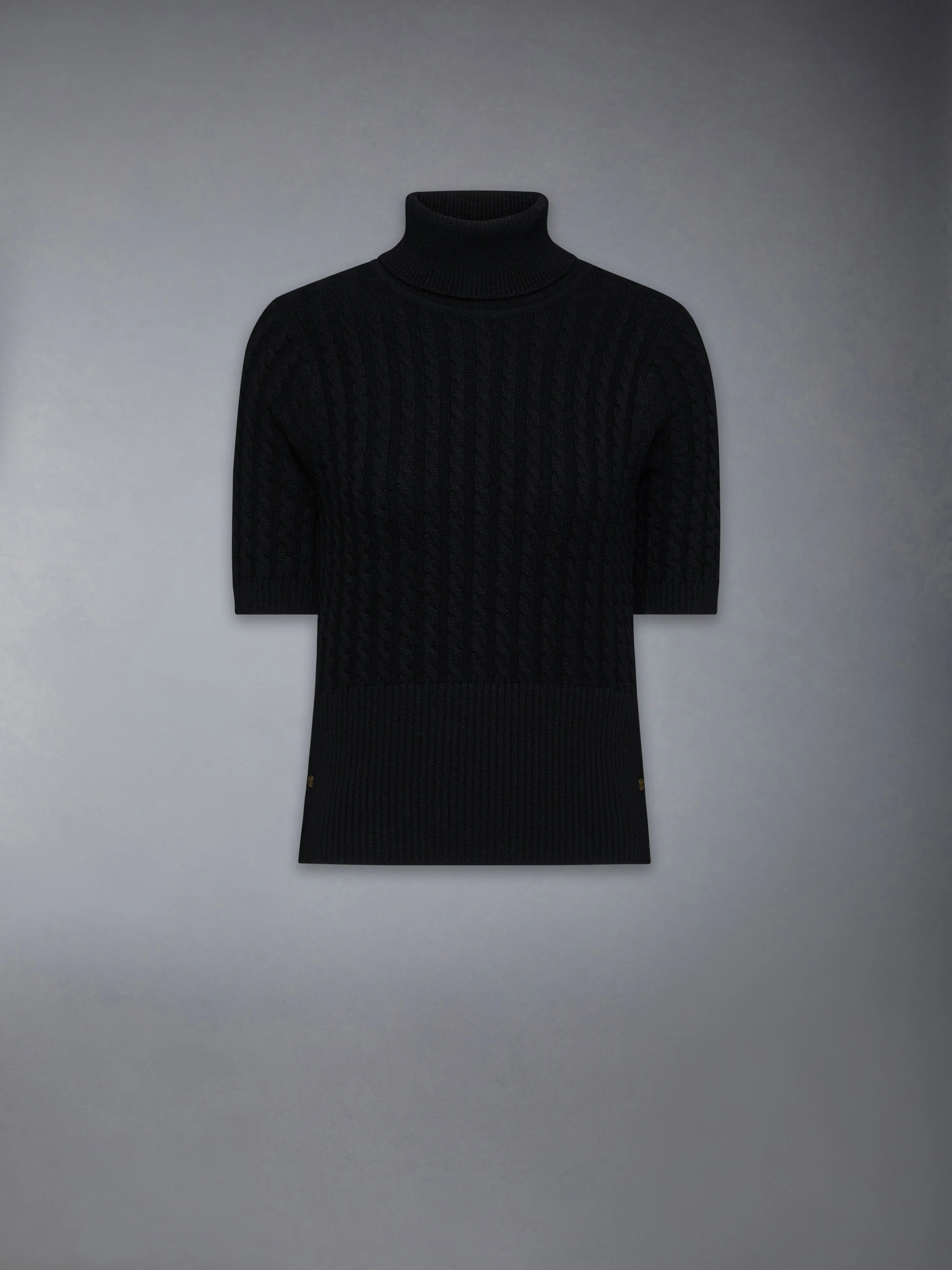 CASHMERE BABY CABLE STITCH SHORT SLEEVE TURTLENECK