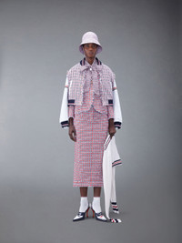DETAILS & FIT Our fine tweed fabric is sourced from a fabric mill founded in 1912 in Carlisle, England. Adorned with a playful check pattern, this limited-edition piece will serve as a staple in your polished summer wardrobe. Tab closure Side slip pockets Button-fastening back welt pockets Signature striped grosgrain loop tab Model is 5'10" (178 cm), wearing size 40 100% Cotton Lining: 100% Silk FGC973T-F0511-960
