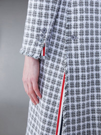 DETAILS & FIT A coat that embodies the fresh spirit of spring, featuring crisp tailoring and a playful check pattern, this limited-edition piece will serve as a staple in your polished summer wardrobe. Pair it effortlessly with any of our seasonal pieces. Our fine tweed fabric is sourced from a fabric mill founded in 1912 in Carlisle, England. Front button closure 2 Flap pockets Single chest pocket Buttoned cuffs with signature striped grosgrain trim Double back vent with signature striped grosgrain trim Gingham lining Interior pocket and name tag Signature striped grosgrain loop tab Fit 4 - Relaxed fit Model is 5'10" (178 cm), wearing size 40 100% Cotton Lining: 100% Cupro FOC777T-F0511-035