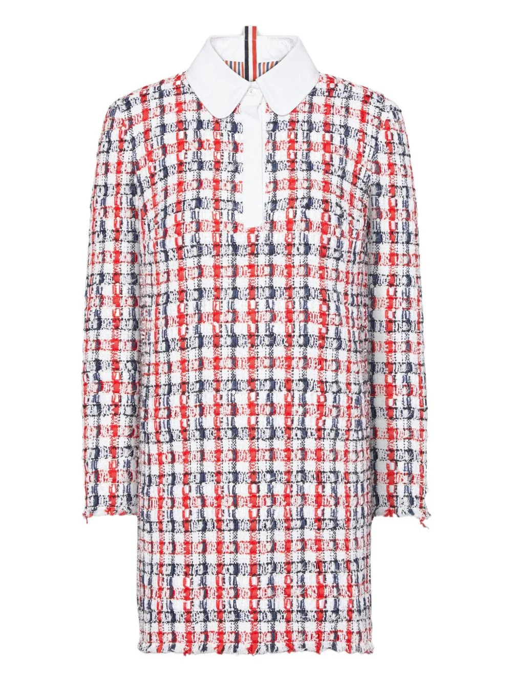 gingham satin-ribbon tweed mini dress Highlights - Red - Check pattern - Long sleeves - Frayed edges - Button fastening Made in Italy Composition Fabric 100% Washing instructions Read Manufacturer Guidelines