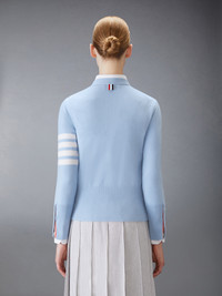 Two Thom Browne emblems define our Classic Cashmere 4-Bar V-neck Cardigan — grosgrain trim and 4-Bar stripe detailing, both synonymous with the brand. Presented in 100% rich cashmere, this cardigan exudes sophistication. V-neckline Front button closure with striped grosgrain placket 4-bar stripe detail at left sleeve Buttoned side vents and cuffs with signature striped grosgrain trim Signature striped grosgrain loop tab at back of neck Model is 5' 10" (178cm), wearing size 40 100% Cashmere Made in the UK FKC001A-00011-480