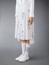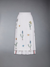 CLASSIC COTTON LINEN BOTANICAL FLOWER PLEATED SKIRT