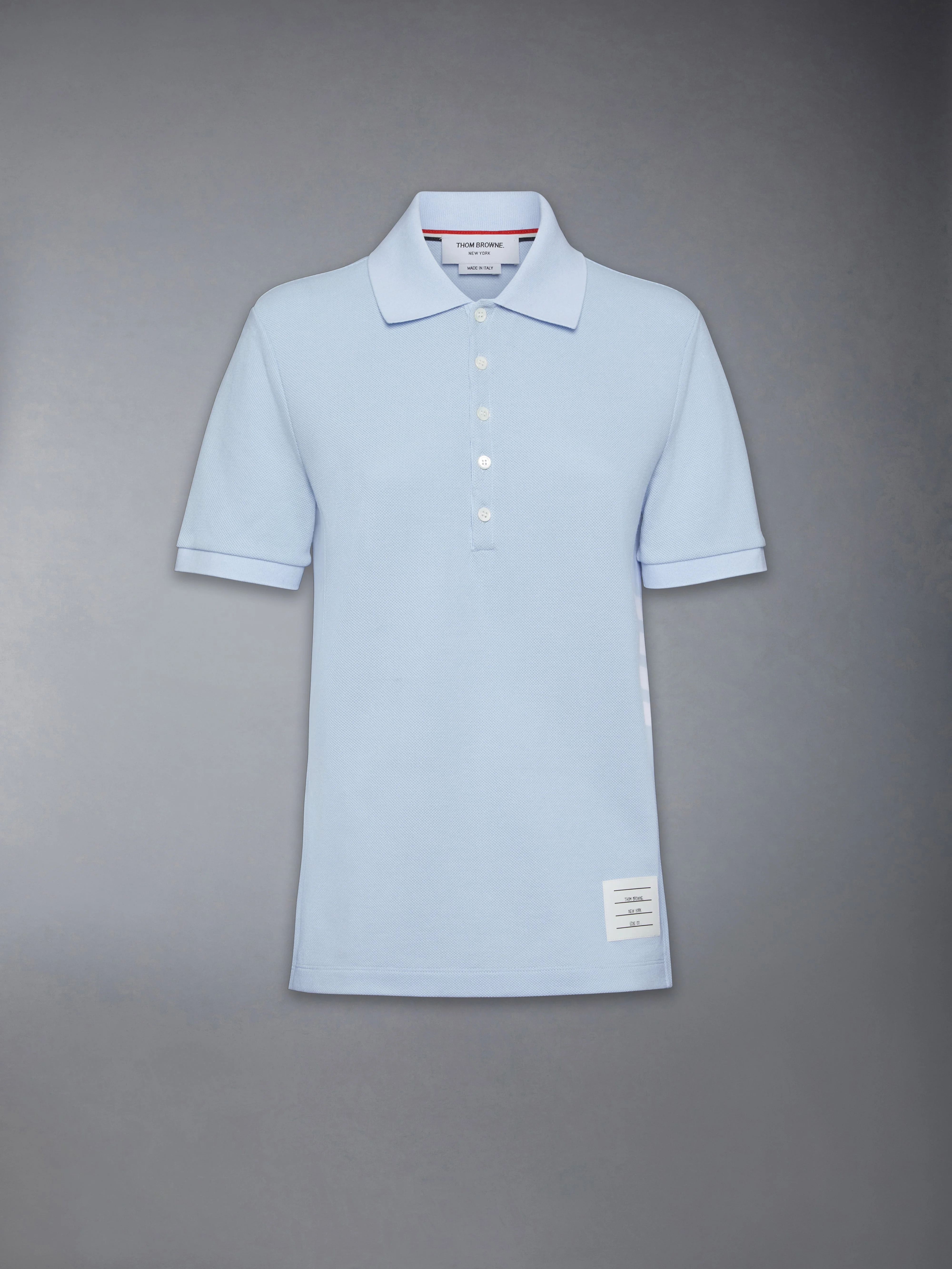DETAILS & FIT Inspired by East Coast preppy icons, this classic pique polo is a sophisticated take on a traditional silhouette. Emblazoned with our iconic 4-bar detailing, an emblem synonymous with the brand. 4-bar detailing Partial front button placket Name tag applique Signature striped grosgrain loop tab Model is 5'10" (178 cm), wearing size 40 100% Cotton Made in Italy FJP107A-00050-480