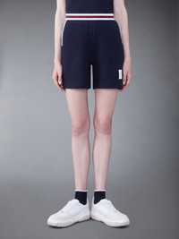 DETAILS & FIT Leisurewear made artful. These breathable cotton shorts are adorned iconic Thom Browne emblems. Elastic waistband Slip side pockets Name tag applique above left hem Signature striped grosgrain loop tab Model is 5'10" (178 cm), wearing size 40 100% Cotton FJQ108A-00050-415