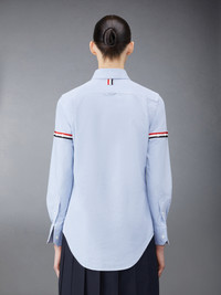 DETAILS & FIT A Thom Browne essential, our Oxford Round Collar Armbands Classic Shirt exhibits quality craftsmanship and meticulous tailoring. Armbands on sleeve Front button closure Patch chest pocket Name tag applique above Rounded hem Signature striped grosgrain loop tab at back of neck 100% Cotton Made in Italy FLL019E-F0313-480