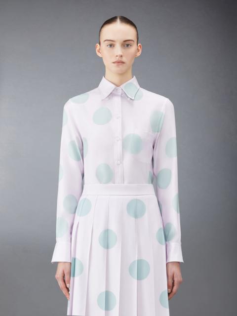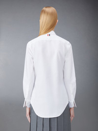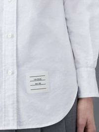 DETAILS & FIT A Thom Browne essential, our Oxford Classic Point Collar Shirt exemplifies Thom Browne's signature inventive proportions and quality craftsmanship. Front button closure Button down point collar Patch chest pocket Name tag applique above curved hem Buttoned cuffs Signature striped grosgrain loop tab at back of neck Model is 5' 10" (178 cm), wearing size 40 100% Cotton Made in Italy FLL005A-F0313-100