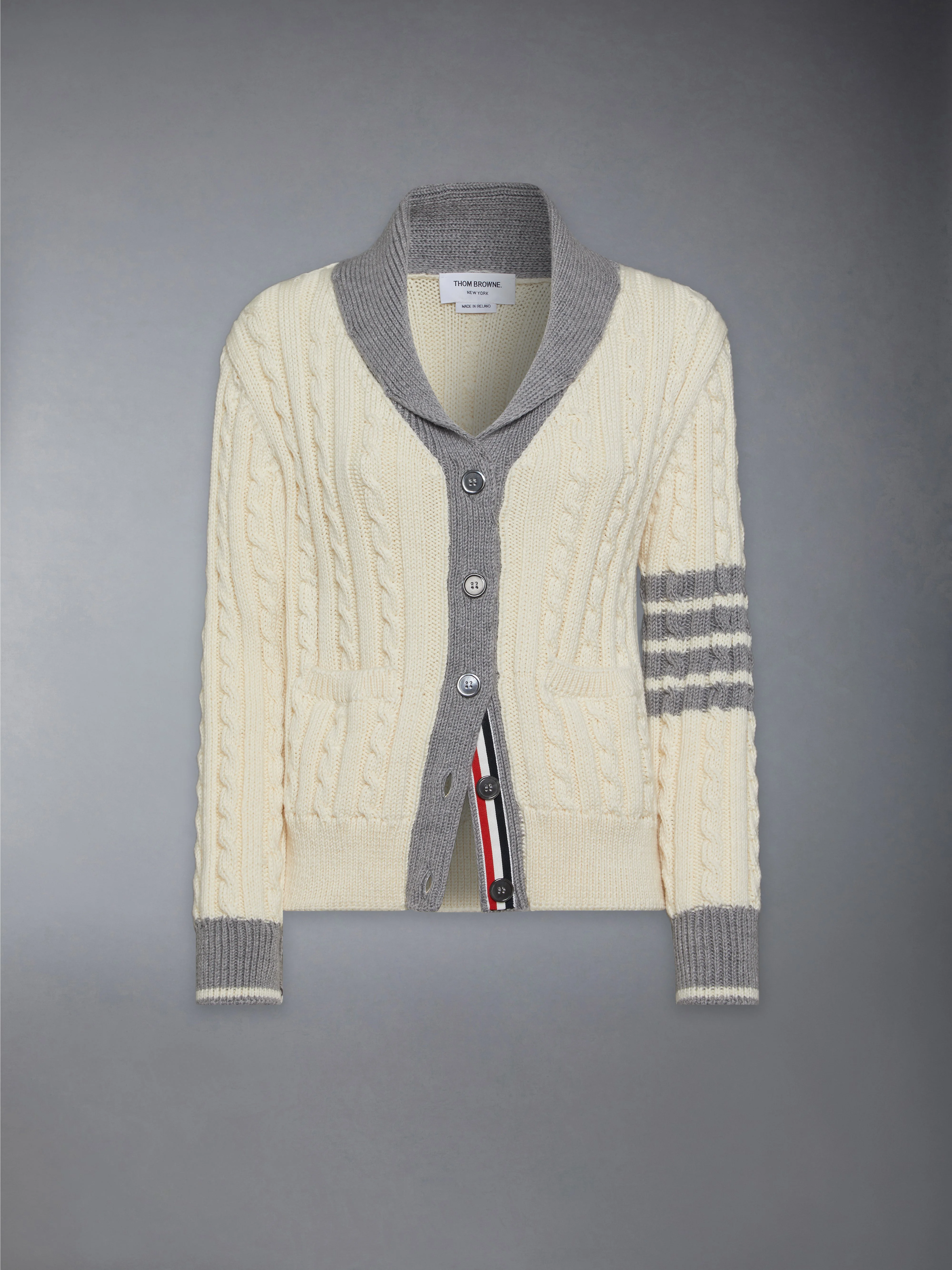 DETAILS & FIT A classic silhouette that will stand the test of time, our Classic Wool 4-Bar Cable Knit Cardigan. Layer it over any of our signature dress shirts or tees. Front button closure with striped grosgrain placket 4-bar detailing 2 Front slip pockets Signature striped grosgrain loop tab Model is 5'10" (178 cm), wearing size 40 100% Virgin Wool Made in Ireland FKC626A-Y1024-100