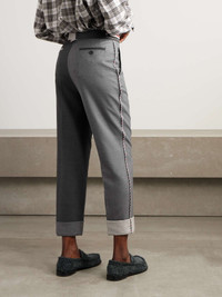 EDITORS'NOTES Thom Browne’s pants will become part of your daily uniform. Tailored in Italy from wool in a color-block gray colorway, they have straight legs that land on rolled cuffs, as well as smart, angled pockets and piping down the sides. Wear yours with a crisp shirt or chunky sweater. SIZE & FIT - Fits true to size, take your normal size - Mid-rise, cut for a straight-leg fit - Adjustable tabs at the waist - Mid-weight, non-stretchy fabric - Model is 177cm/ 5'10" and is wearing an IT 40 DETAILS & CARE - Multicolored wool - Concealed hook and button fastening at front - 100% wool; lining: 100% cupro - Dry clean