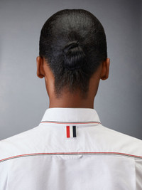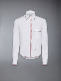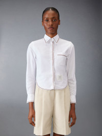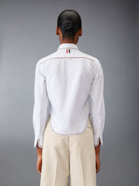 DETAILS & FIT A twist on a classic silhouette. Signature Thom Browne emblems make our Classic Long Sleeve Shirt come alive. Crafted with fine cotton fabric. Front button closure Front patch pocket Name tag applique Pleated back yoke with locker loop Signature striped grosgrain loop tab Model is 5'10" (178 cm), wearing size 40 100% Cotton Made in Italy FLL196G-F0313-100