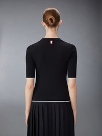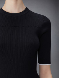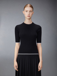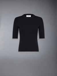 DETAILS & FIT An everyday tee that embodies the subtle sophistication of the season, featuring crisp tailoring and a luxurious cable knit stitch. Signature striped grosgrain loop tab Model is 5'10" (178 cm), wearing size 40 70% Virgin Wool, 30% Silk Made in ITALY FKA476A-Y1042-001
