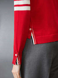 DETAILS & FIT A signature Thom Browne emblem defines this classic pullover — iconic 4-Bar stripes, synonymous with the brand. Presented in breathable cotton fabric, this shirt is a longstanding staple. Front button closure 4-bar detailing Buttoned cuffs with signature striped grosgrain trim Buttoned side vents with signature striped grosgrain trim Signature striped grosgrain loop tab Model is 5'10" (178 cm), wearing size 40 100% Cotton Made in Italy FKL003A-Y3036-600