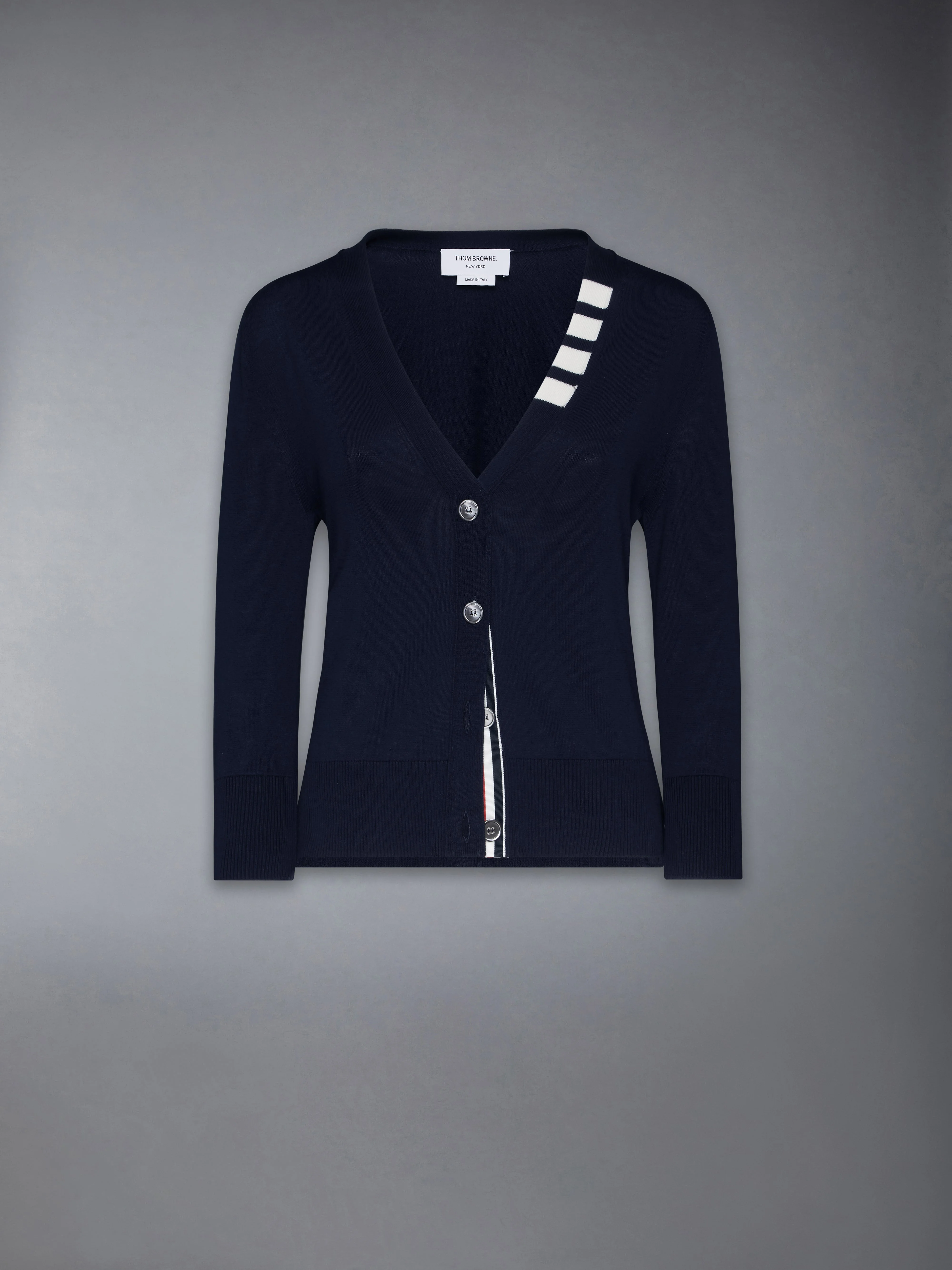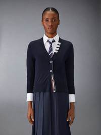 DETAILS & FIT A signature Thom Browne emblem defines this classic cardigan — iconic 4-Bar stripes synonymous with the brand. Presented in breathable cotton fabric, this cardigan is a longstanding staple. Front button closure with striped grosgrain placket 4-bar detailing Buttoned side vents with signature striped grosgrain trim Buttoned cuffs with signature striped grosgrain trim Signature striped grosgrain loop tab Model is 5'10" (178 cm), wearing size 40 100%Cotton Made in Italy FKC631A-Y3036-415