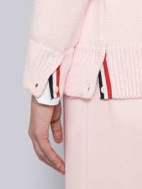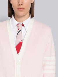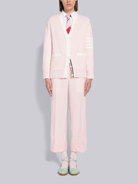 DETAILS & FIT V-neck cardigan in light pink cotton jersey with 4-bar stripe detail at left sleeve and flower intarsia at back in white. Front button closure with striped grosgrain placket, 2 slip front pockets, ribbed cuffs and hem. Buttoned side vents and cuffs with signature striped grosgrain trim. Signature striped grosgrain loop tab at back of neck. Model is 5'10" (178 cm), wearing size 40 Made in Italy 100% Cotton FKC486AY3017641