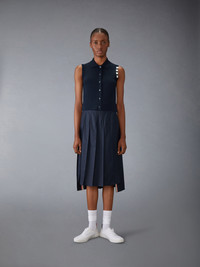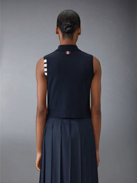 DETAILS & FIT A silhouette that has stood the test of time, this luxe sweater is adorned with signature Thom Browne emblems throughout and tailored to perfection. Layer it over any of our signature dress shirts on cool spring days. Front button closure 4-bar detailing Buttoned side vents with signature striped grosgrain trim Signature striped grosgrain loop tab Model is 5'10" (178 cm), wearing size 40 100% Cotton Made in Italy FKL002A-Y3036-415