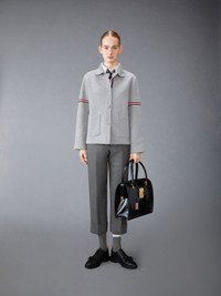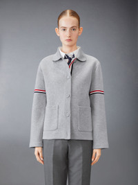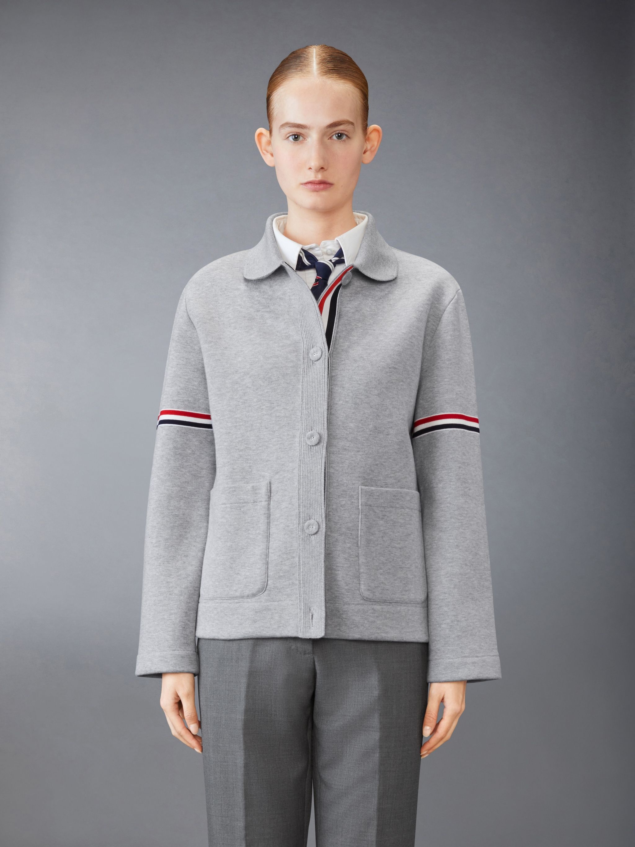 DETAILS & FIT A versatile weighted layer for cool days and nights, this piece effortlessly balances sophisticated outerwear with everyday casual wear. Front button closure with striped grosgrain placket 2 Front patch pockets Grosgrain armbands Signature striped grosgrain loop tab Model is 5'10" (178 cm), wearing size 40 98% Cotton, 1% Polyurethane, 1% Polyamide Made in Italy FKJ113A-Y3004-065