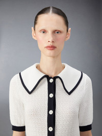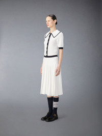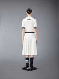 DETAILS & FIT A classic silhouette that will stand the test of time, our Cotton Pointelle Dress. This versatile piece can be worn all year round. Romantic pointelle detailing adds an elegant touch. Peter Pan collar Partial front button closure Ribbed hem Pleated bottom Model is 5'10" (178 cm), wearing size 40 100% Cotton FKD172A-Y3009-100