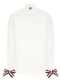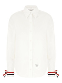 ribbon-cuff cotton shirt Highlights - White - Long sleeves - Ribbon cuffs - Button fastening - Logo patch Made in Italy Composition Cotton 100% Washing instructions Read Manufacturer Guidelines