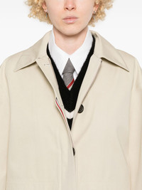 cotton trench coat Highlights - Beige - Cotton - Twill weave - Waterproof - Concealed front button fastening - Straight-point collar - Drop shoulder - Long sleeves - Two front flap pockets - Signature grosgrain loop tab - Buttoned central rear vent - Rwb stripe lining - Straight hem - Mid-length Made in Italy Composition Cotton 100% SIZE & FIT Model measurements Height 5 ft 9 in(1.75 m) Bust/Chest 34.64 in(88 cm) Hips 36.61 in(93 cm) Waist 26.37 in(67 cm) FittingInformation Designed to be unstructured, offering a loose fit throughout The vented hem offers movement at the rear Made from a midweight non-stretch fabric