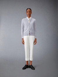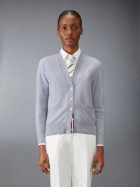 A simple cardigan that exudes sophistication. Presented in luxe cotton silk fabric, this quality piece will stand the test of time. Front button closure with striped grosgrain placket 2 Front slip pockets Signature striped grosgrain loop tab Model is 5'10" (178 cm), wearing size 40 70% Cotton, 30% Silk Made in Italy FKC630A-Y3037-065