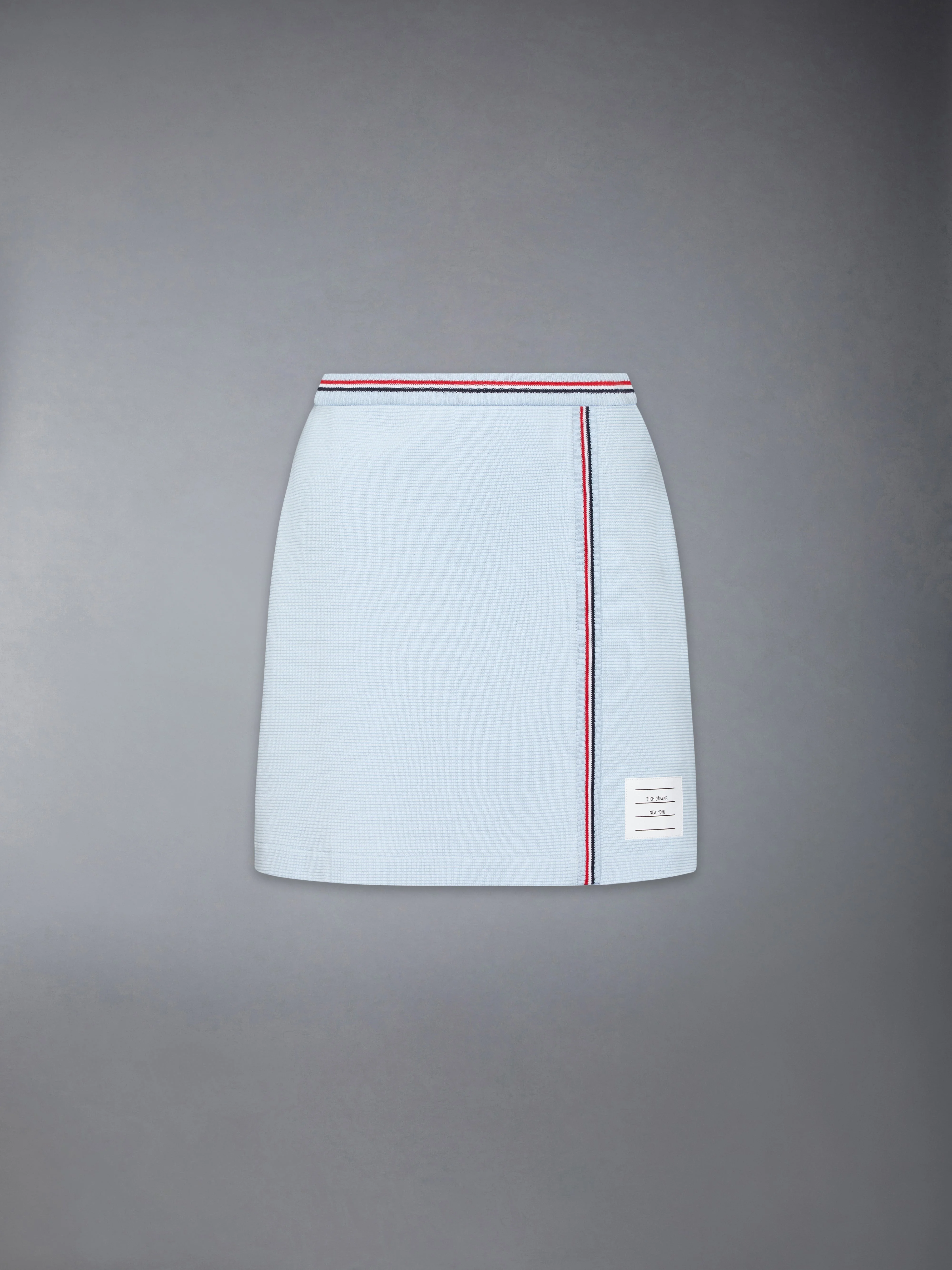 A classic wrap skirt in lightweight cotton waffle fabric, perfect for transitional dressing from mid-summer to fall. Pair it effortlessly with any of our signature dress shirts. Pull on Nametag applique Signature striped grosgrain loop tab Model is 5'10" (178 cm), wearing size 40 100% Cotton Made in Italy FJK141A-J0216-480 FJK141A-J0216-480