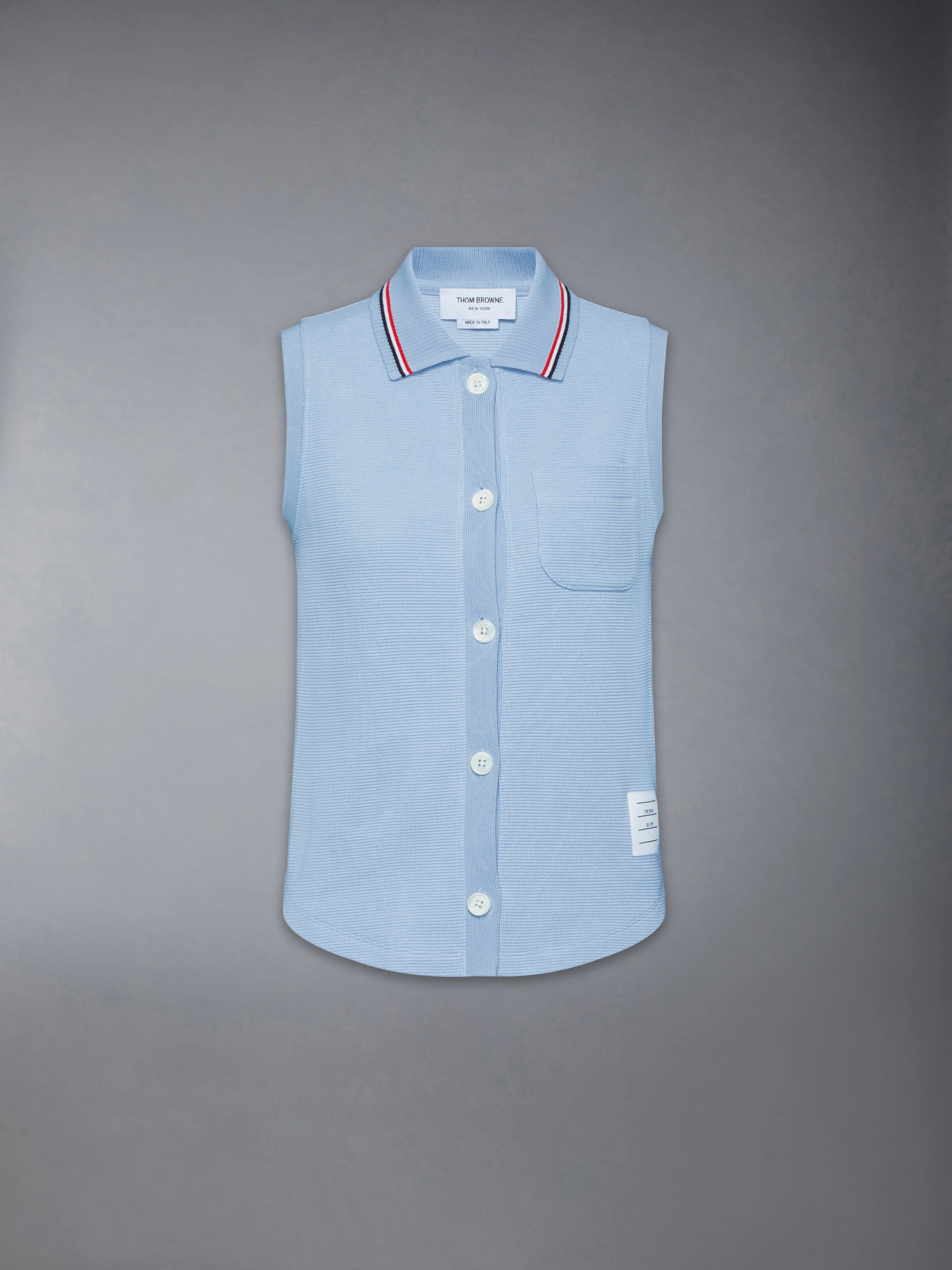 COTTON WAFFLE SLEEVELESS BUTTON SHIRT
