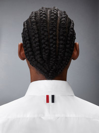 A classic lightweight shirt with a modern twist — cropped to pair effortlessly with your favorite high-waisted pants. Front button closure Chest patch pocket Nametag applique Pleated back yoke with locker loop Signature striped grosgrain loop tab Model is 5'10" (178 cm), wearing size 40 100% Cotton Made in Italy FLL205A-03113-100 FLL205A-03113-100