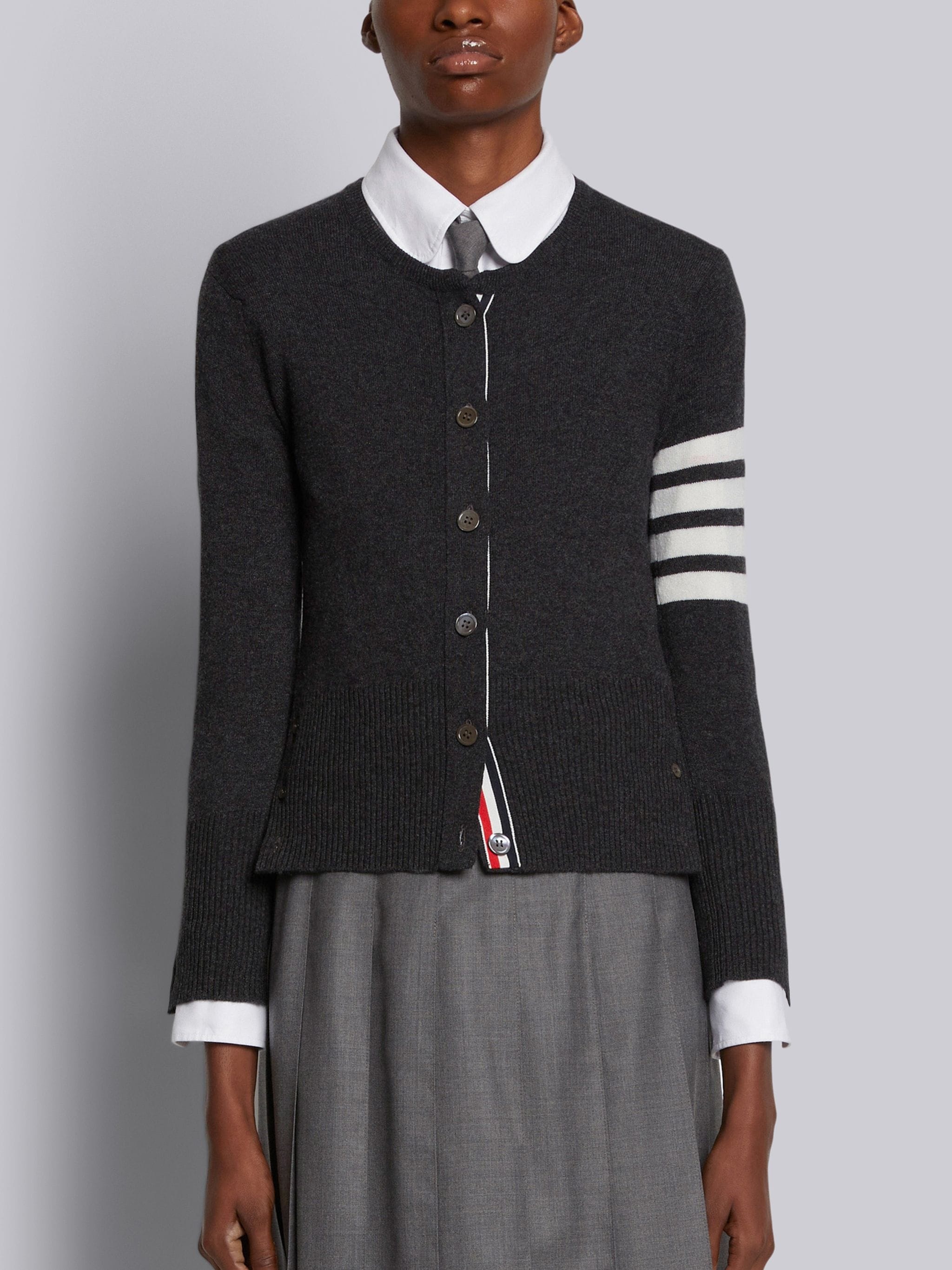 Dark Grey Cashmere 4-Bar Classic Crew Neck Cardigan