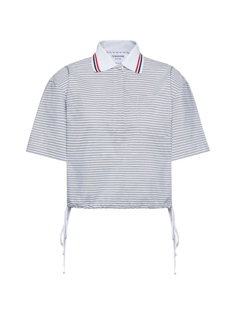 4-bar striped poplin polo top Highlights - Navy blue - Striped print - Chest pocket - Striped collar - Drawstring hem Made in Italy Composition Cotton 97%, Lycra 3% Washing instructions Read Manufacturer Guidelines