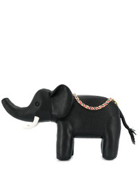 Elephant chain shoulder bag Known for adding a fun spin on expertly crafted accessories, Thom Browne has included this Elephant shoulder bag in its AW21 collection. Made from calf leather in a pebbled finish, this eye-catching three-dimensional piece is embellished with a signature RWB tab at the top and features a detachable fabric and chain-link strap with refined gold-tone hardware. Highlights - Black - Calf leather - Three-dimensional construction - Pebbled texture - Top zip fastening - Rwb stripe - Detachable fabric and chain-link shoulder strap - Striped lining - Internal logo patch - Fringe detailing Imported Composition Outer: Calf Leather 100% SIZE & FIT Measurement DEPTH 4.33 in(11 cm) HEIGHT 7.87 in(20 cm) WIDTH 18.11 in(46 cm)