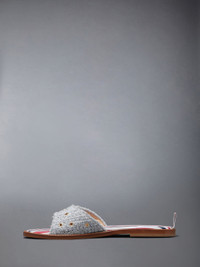 embossed-button tweed flat sandals