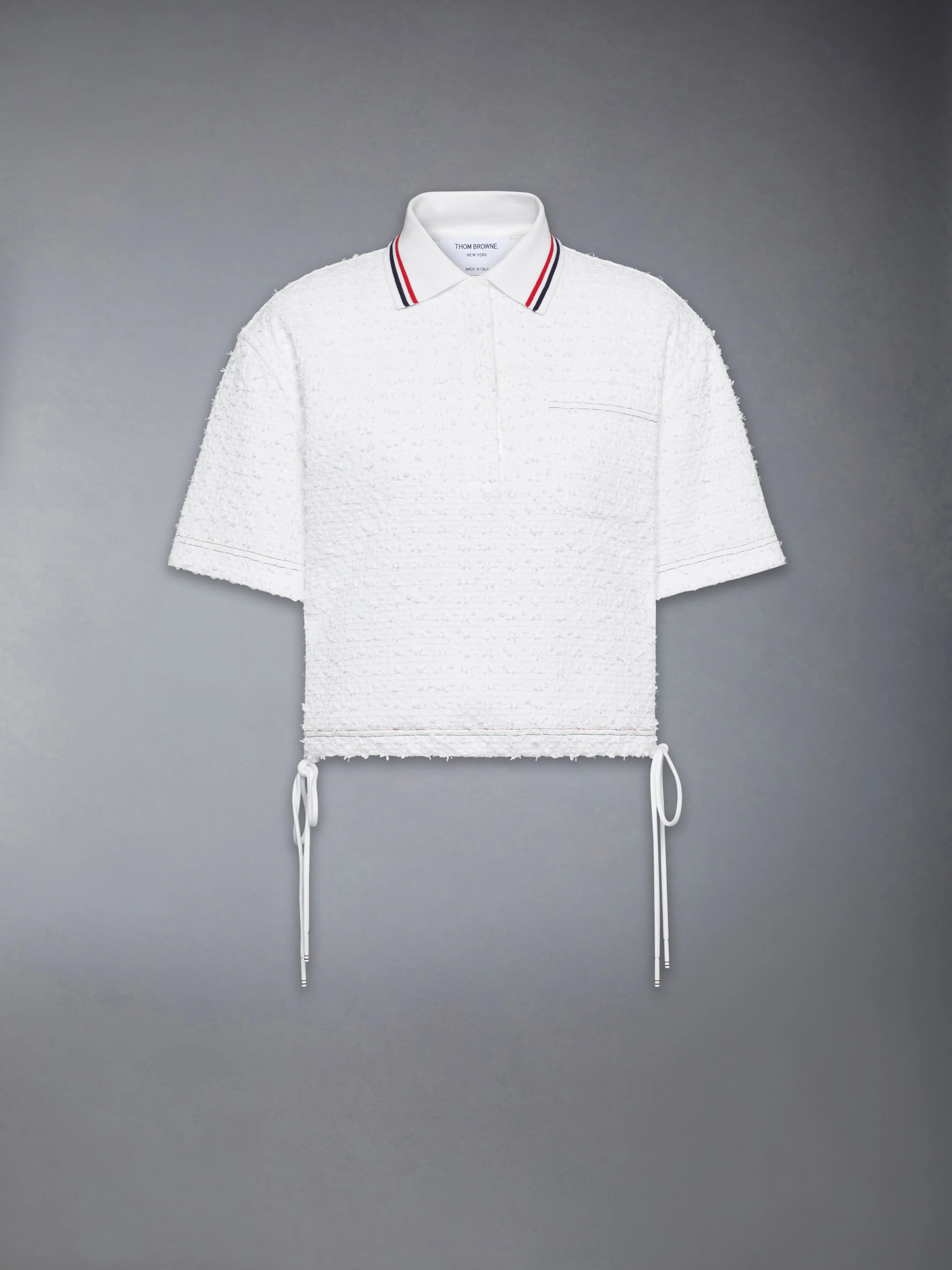EYELASH RIBBON TWEED DRAWSTRING HEM POLO