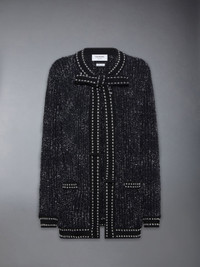 EYELASH TWEED JACQUARD NECK TIE CARDIGAN