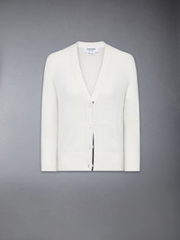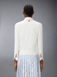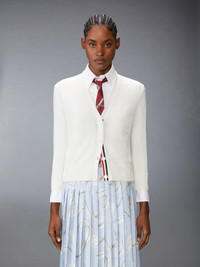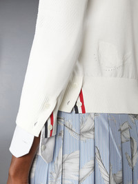 There’s more to this cardigan than meets the eye. Delicate pointelle feathers are woven into its body, evoking bird migration, seasonal changes, and new beginnings. Subtle yet full of meaning, it’s a piece that carries a story within. Front button closure with striped grosgrain placket 4-bar detailing Buttoned side vents with signature striped grosgrain trim Buttoned cuffs with signature striped grosgrain trim Signature striped grosgrain loop tab Model is 5'10" (178 cm), wearing size 40 100% Cotton Made in Italy FKC651A-Y3036-100 FKC651A-Y3036-100
