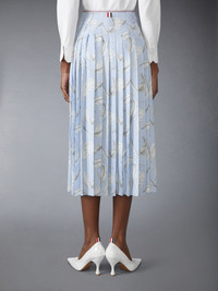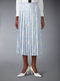 FEATHER PRINTED SILK TWILL PLEAT SKIRT