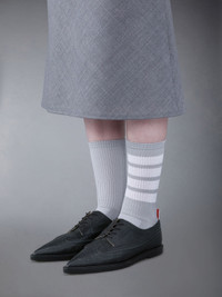 DETAILS & FIT Crafted with the highest quality of classic shoemaking, these brogues are a staple in Thom Browne's legacy. Lace up closure Perforated broguing throughout Leather sole Leather insole and lining Signature striped grosgrain loop tabs Upper: 100% Calf Leather Sole: 100% Calf Leather Lining: 100% Goat Leather FFD131A-06257-001 - HEEL: 1.8cm - Sole height: 1.2cm