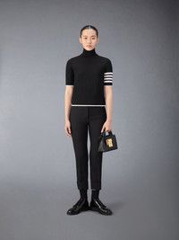 DETAILS & FIT A silhouette that has stood the test of time. This classic relaxed fit turtleneck is adorned with signature Thom Browne emblems throughout and tailored to perfection. Turtleneck 4-bar striped detail at left sleeve Ribbed hem Buttoned side vents with signature striped grosgrain trim Signature striped grosgrain loop tab Model is 5'10" (178 cm), wearing size 40 99% Virgin Wool, 1%Polyamide Made in Italy FKA434D-Y1014-001