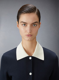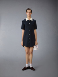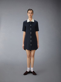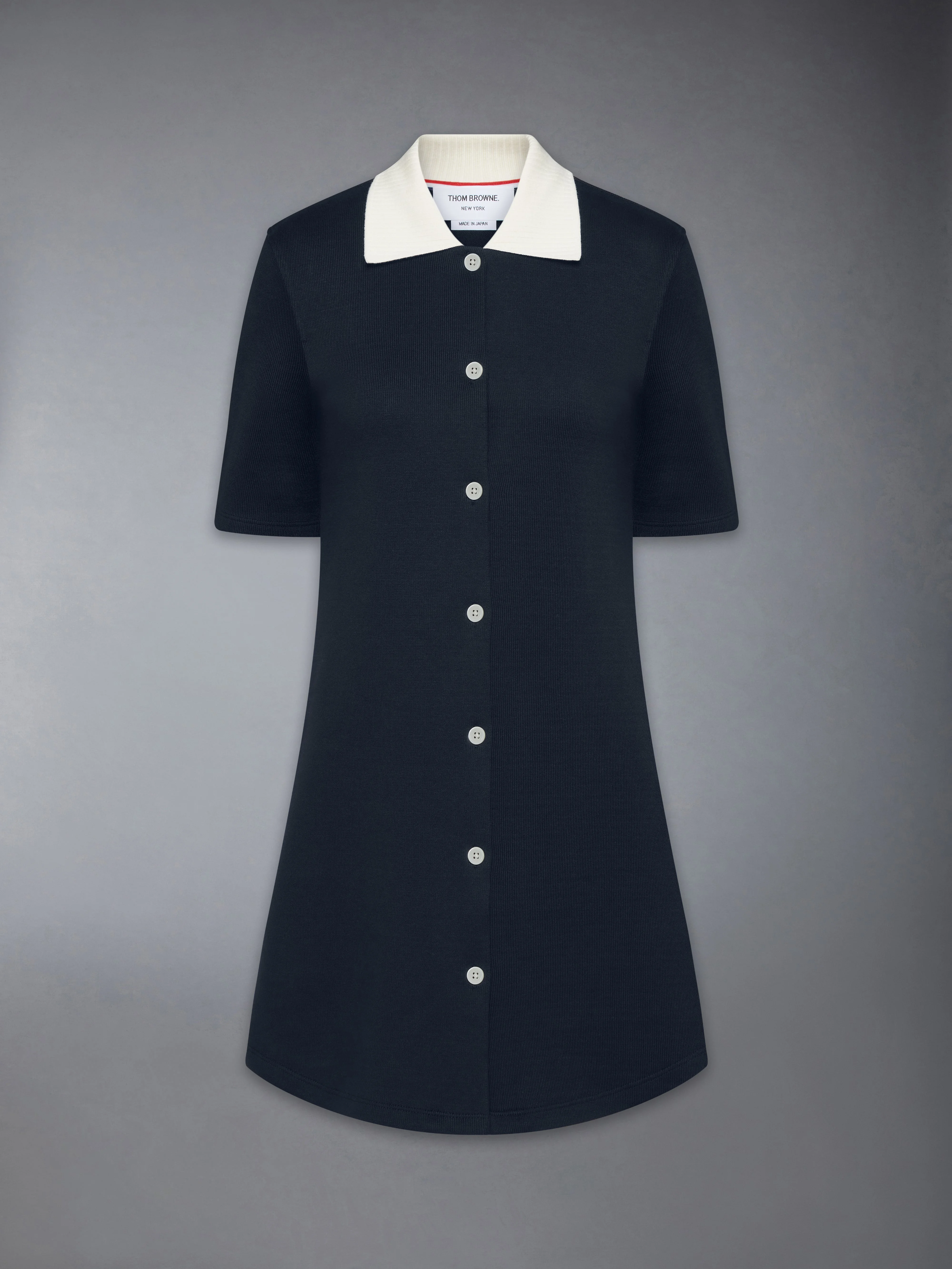 A silhouette that never goes out of style. This polo dress is crafted from luxurious knit fabric with subtle Thom Browne branding. Designed for year-round wear, it's warm enough for cooler days yet breathable enough for warmer weather—a versatile staple that belongs in every wardrobe. Front button closure Signature striped grosgrain loop tab Model is 5'10" (178 cm), wearing size 40 100% Cotton Made in Italy FJD129A-J0223-415