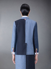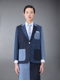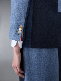 DETAILS & FIT Sack sport coat in Fun-Mix blue and navy double face Melton. Brass front button closure, notched lapels, 3 patch front pockets. Buttoned cuffs with signature striped grosgrain trim. Single back vent. Striped lining with interior pocket and name tag. Signature striped grosgrain loop tab at back of neck. Sack - Fit 2. Model is 5'10" (178 cm), wearing size 40 100% Wool Made in Italy FBC334F05385415